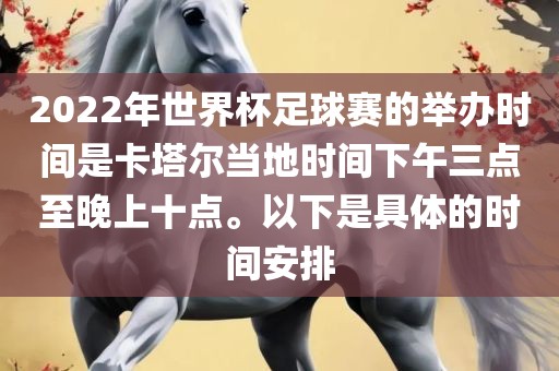 摘要:2022年世界杯足球赛在卡塔尔举行,赛事时间定于当地时间下午三点至晚上十点。赛事具体安排包括小组赛、淘汰赛等阶段,届时将展开激烈的足球比赛。这一盛事吸引了全球足球爱好者和球迷的关注和期待。